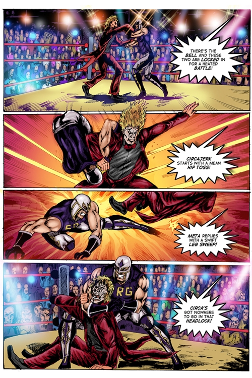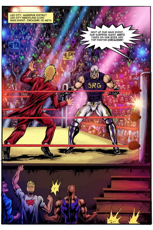 The squared circle meets superheroic action as the pro wrestler / comic book superhero META makes his full length comic book debut! Written by real life SPW pro-wrestler Ezekiel Zhong-Han Azib aka META!