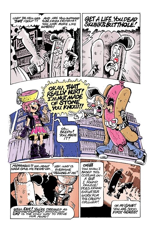 Our heroes take the next steps on their journeys! Squints commits to his role as a customer service slave for Video Hive, but a dark truth awaits him which will be revealed by the villainous Hive Mind! Meanwhile, Beepo confronts his conflicted emotions over Asparagus, leading to an identity crisis that a wise (and familiar looking) hobo clown must put into perspective for him. And while Roadkill remains out of the picture, someone has been keeping an eye on all these matters… and they don’t like what they see.