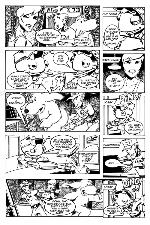 Domino and cow have their hyperdrive beak and they end up in a different universe, where they meet Gizmo Sprocket and Fluffy Brockelton. The Five try to find parts to send Domino, Arnie, and Troubles back to their universe.
