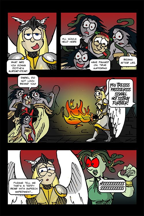 Dariel has geared up for the greatest adventure of his existence: to slay Satan. After making a bet with his brother Gabriel, Dariel has descended the Upper Circles of Hell. The epic poet, Dante, has been sent by Gabriel as a guide. They have carefully traversed from Limbo down into the City of Dis in the Sixth Circle. There, Dariel encounters a band of fallen angels looking for trouble. Amid the scuffle, they attract the attention of the Furies who have captured Dante.