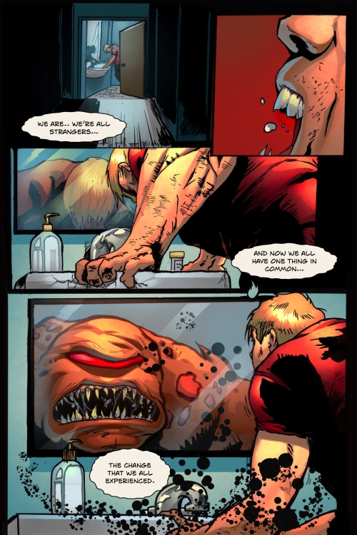 X-men meets monster comics thrown into a world mirroring our own. Some fourth wall-breaking humor with action, violence, conspiracy, nudity and plenty of reasons not to give this book to your kids.