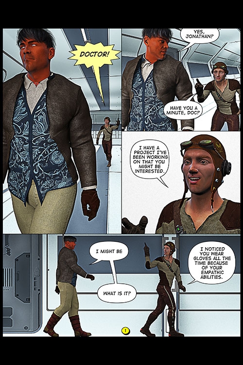 When Dr. Wynterhawke agrees to test Jonathan’s experimental shield device to address his empathic abilities, the technology malfunctions, leaving him unable to turn the device off. Personal complications take a backseat to galactic politics when the crew’s diplomatic mission with the mysterious Vredruil takes an unexpected turn.